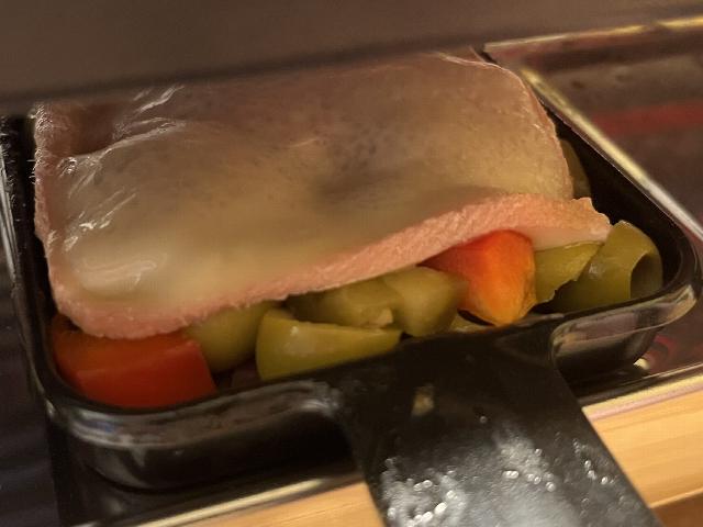 Zwiebeln sehr fein würfeln und im Pfännchen unten mit Kräuterbutter anbraten. Dann Gemüse und Fleisch drauf und mit Käse überbacken.